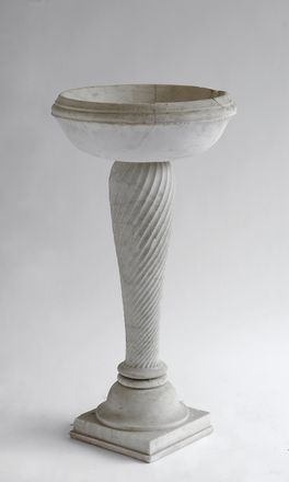 Conca portavasi su colonna tornita e scanalata in marmo bianco, base...
