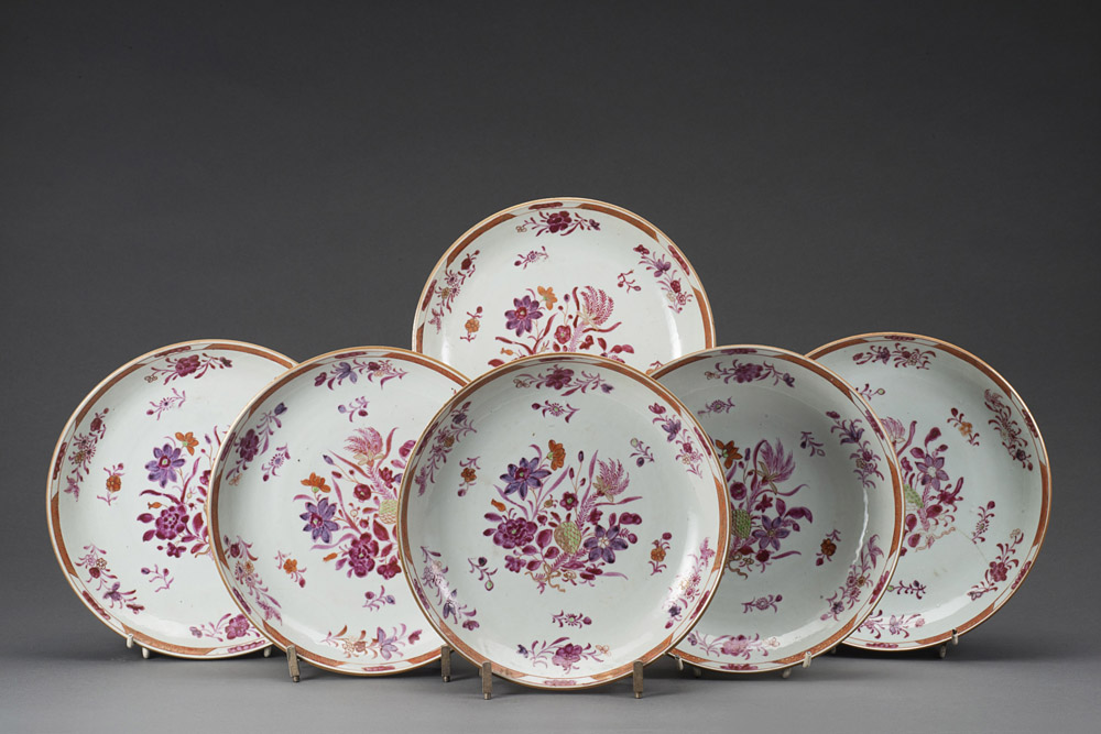 Gruppo di sei piatti in porcellana cinese da esportazione, decorato in...