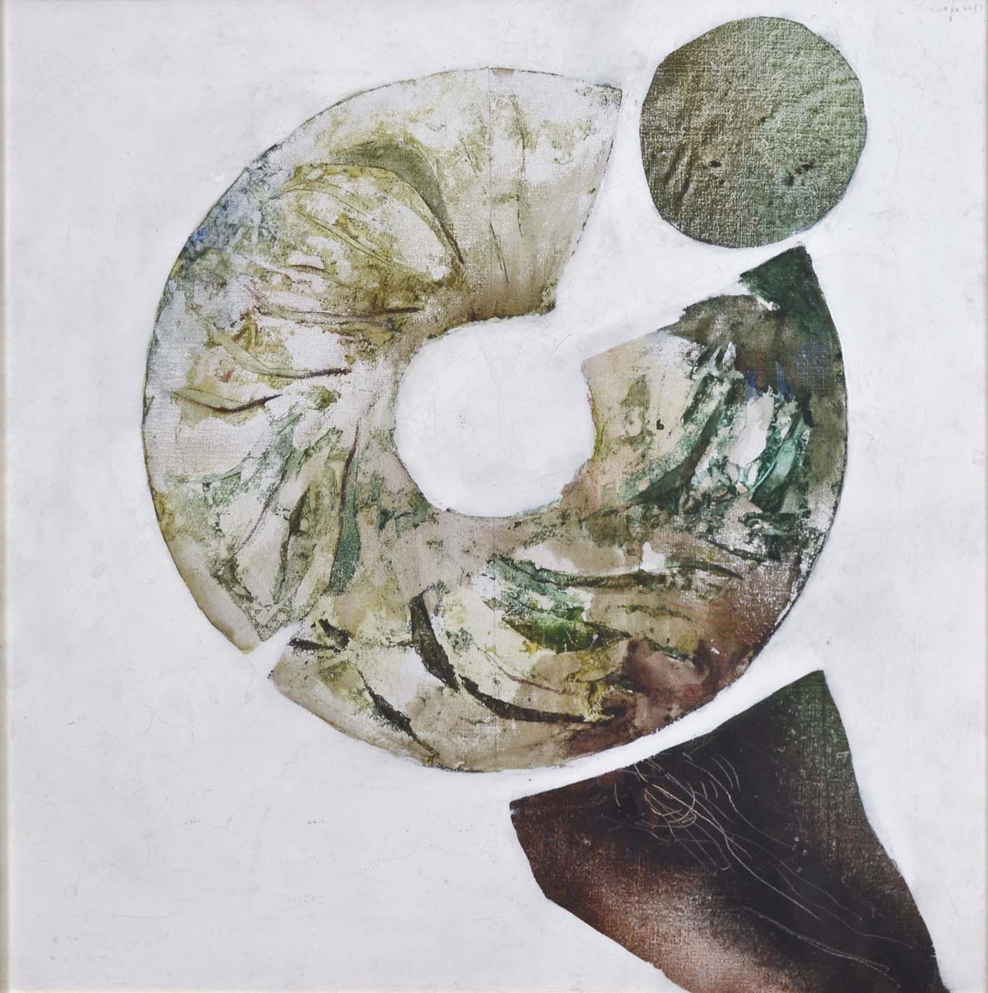 GASPARI LUCIANO Venezia 1913 - 2007 Germinazione 1969 olio e tecnica mista su tela 50x50 firma in alto a destra, firma e data al retro
