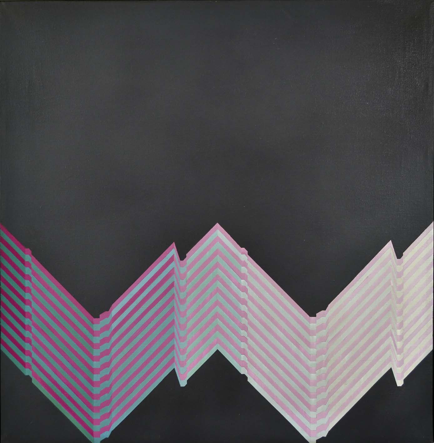 COSTANTINI NADIA Venezia 1950 Modulazione di superficie rosso-verde 1978 acrilici su tela 70x70 firma data e titolo al retro autentica dell'Autore su foto