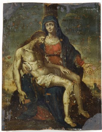 Lot 151 | Scuola Italia centrale, inizi XVIII sec. PIETÀ Olio su rame, cm. 21x16,4...