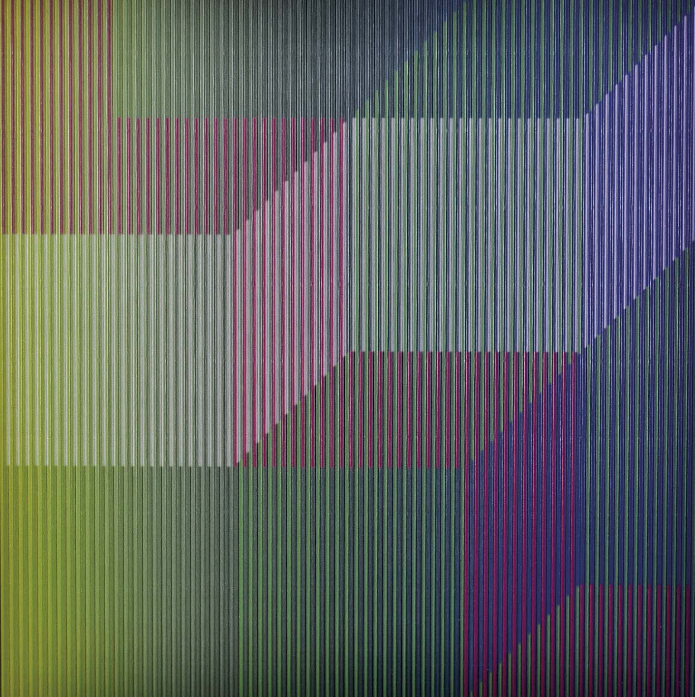 RENKO SANDI Trieste 1949 Stripe 215, 2015 areografo e acrilico su cannetté 47x47 firma data e titolo al retro Padiglione delle Arti 2015 Marcon - etichetta al retro