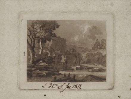 Lot 154 | H.I PAESAGGIO, 1811 Acquatinta stampata in seppia, cm. 13,5x19 Monogramma e...