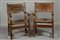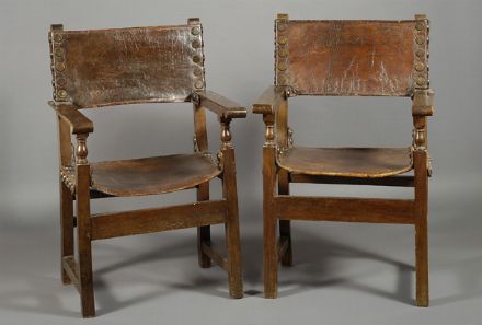 Due poltrone in noce, seduta e spalliera in cuoio originale, XVII sec.