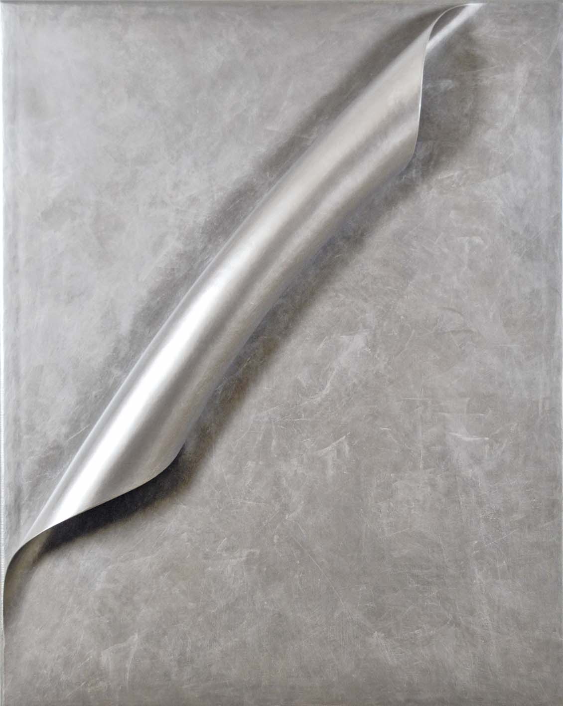 BACCARIN ANTONIO Cavarzere 1954 senza nome 2009 acrilici su tela e su arrotolamento di fibra di carbonio e vetro 50x40 firma data e titolo al retro autentica dell'Autore su foto