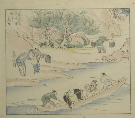 Niwa Kagen (1742 - 1786) PESCATORI Xilografia a quattro colori, firma in alto...