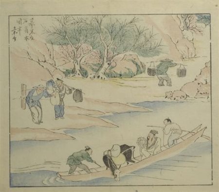 Niwa Kagen (1742 - 1786) PESCATORI Xilografia a quattro colori, firma in alto a sinistra, cm. 27,5x31