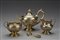 Servizio da tè in argento dorato composto da: teiera, lattiera, zuccheriera e...