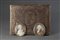 Firma indecifrata fine sec. XVIII "Gentiluomo e gentildonna" coppia di miniature su avorio (cm 6x5) in cornici in oro basso con profili decorati da perline. Custodia in marocchino impressa in oro con stemma nobiliare entro cornice a foglie e volute (difetti) "Nobleman and noblewoman" pair of late 18th-century miniatures on ivory (defects)