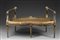 Panchetto in legno intagliato, laccato e dorato, a motivi vegetali e rosoni. Gambe tornite e scanalate. Fine sec. XVIII (difetti) Carved and lacquered gilt-wood bench. Late 18th century (defects)