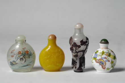 Lot 227 | Quattro tabacchiere in vetro, di diversa forma, Cina, XIX-XX sec.