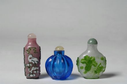Lot 229 | Tre tabacchiere in pasta vitrea e vetro, due con decori a cammeo, Cina,...