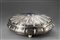 Scatola di forma circolare in argento costolata e cesellata con foglie....