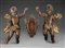 Lotto composto da due putti ed un puntale in legno intagliato, laccato e...