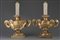 Coppia di portapalme biansati in legno intagliato e dorato a volute (montati...