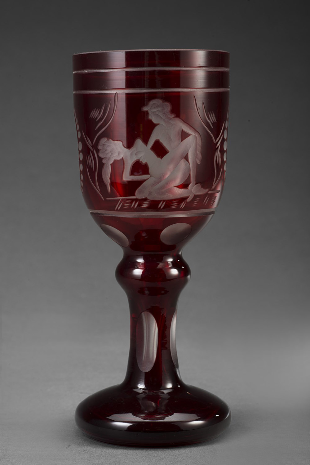 Lot 250 | Manifattura di Boemia inizio sec. XX. Calice in cristallo rosso decorato con...