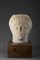 Antica testa in marmo raffigurante volto femminile alla maniera arcaica (h. cm 20) su base in legno Old marble head