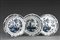 Tre piatti tondi a bordo sagomato e rialzato in maiolica in monocromia blu su...