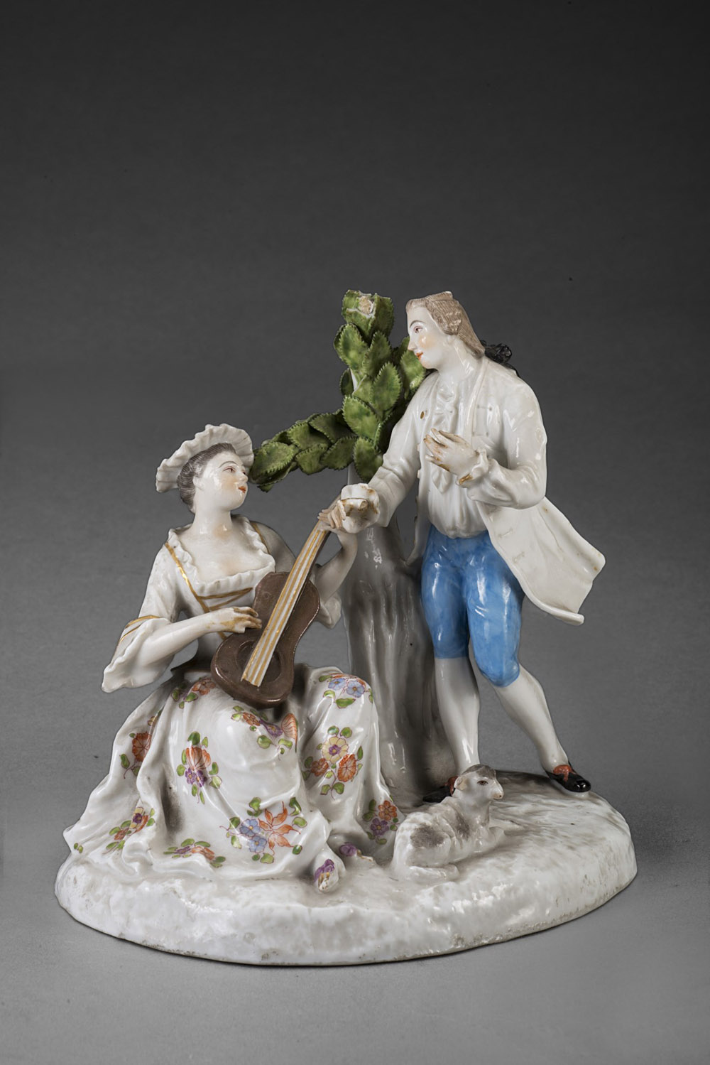 Lot 285 | Manifattura tedesca sec. XVIII "Minuetto" gruppo in porcellana policroma...