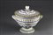 Piccola zuppiera tonda con coperchio e piede rialzato di gusto neoclassico....