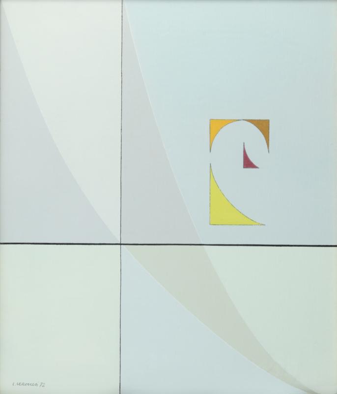 LUIGI VERONESI (1908-1998) Costruzione B2 1972 olio su tela cm 59,5x 49,5 firmato e datato in basso a sinistra e sul retro