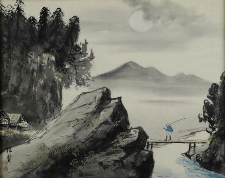 Paesaggio con contadino Dipinto su seta, firmato in basso a sinistra, Cina, inizi XX sec., cm. 47x38