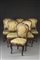 Gruppo di sei sedie in noce con schienale sagomato ed intagliato a...