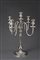 Candelabro in argento a cinque fiamme con fusto rastremato. Bobeche a vaso e...