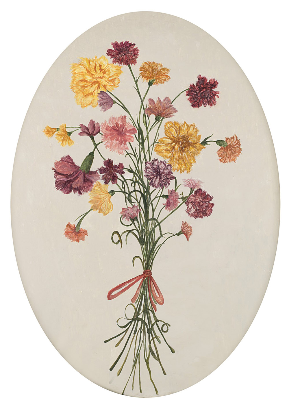 Ignoto della fine del secolo XVIII "Mazzo di fiori" tempera su tela (cm 79x59) In cornice ovale Unknown, late 18th-century, "Bunch of flowers" tempera on canvas. Framed