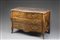 Commode di forma bombata a tre cassetti con fronte e fianchi lastronati,...