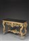 Tavolo da parete in legno intagliato e dorato, piano in legno a finto marmo,...