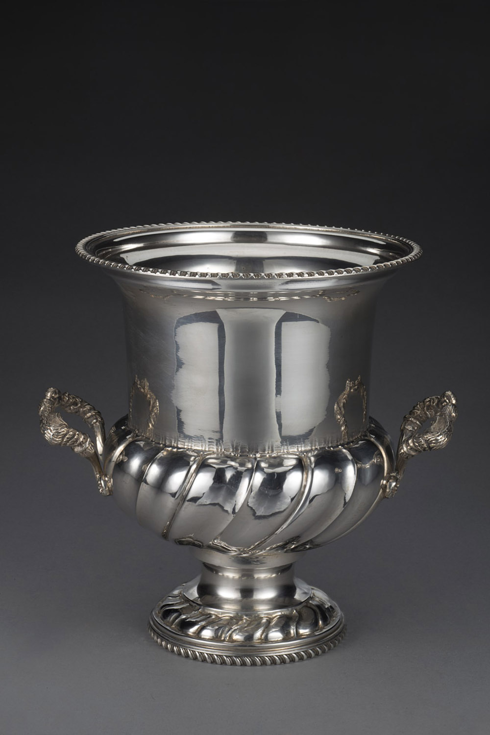 Lot 625 | Rinfresca bottiglie in argento a due manici a forma di vaso con costolature e...