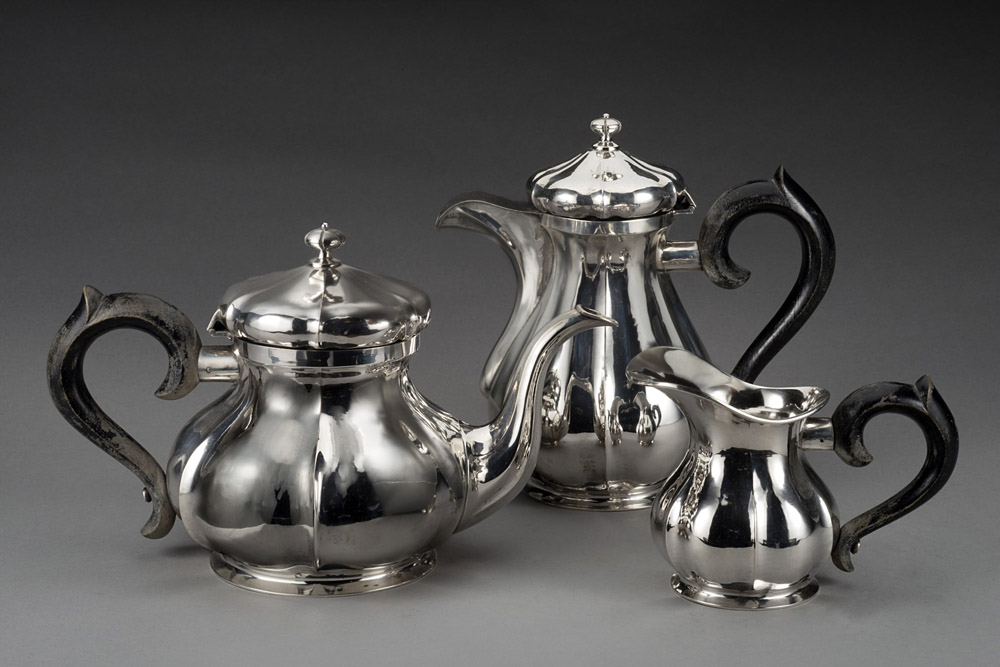 Servizio da tè e caffè in argento composto da caffettiera, lattiera e teiera...