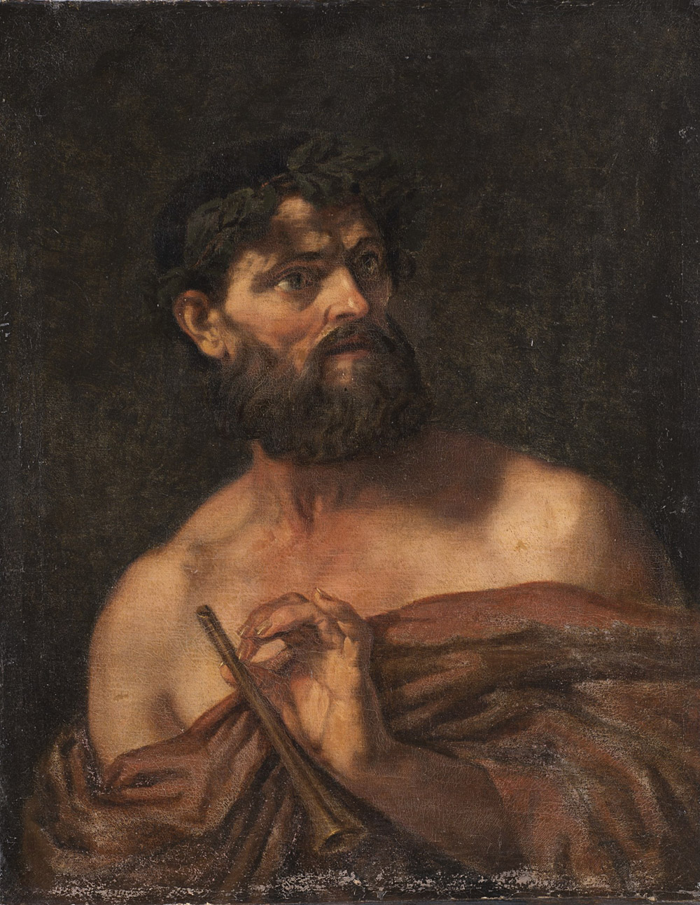 Maestro genovese del secolo XVII "Il dio Pan" olio su tela (cm 92x74)In...