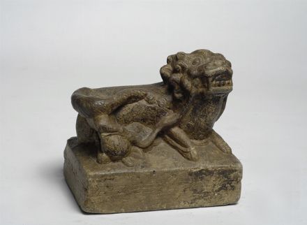Cane di Pho in pietra su base a plinto, Cina, XVIII sec.