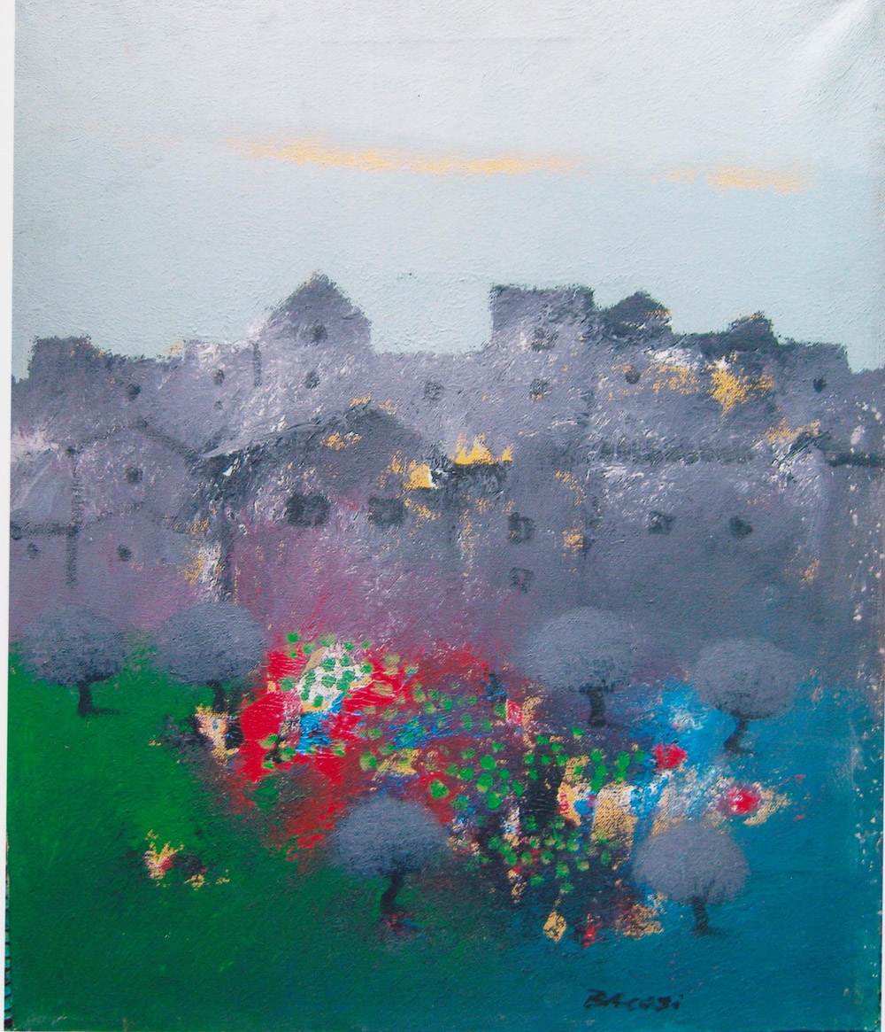 Manlio Bacosi "Paesaggio umbro" olio su tela cm 60x50 Autentica Galleria L'Alfiere-TO
