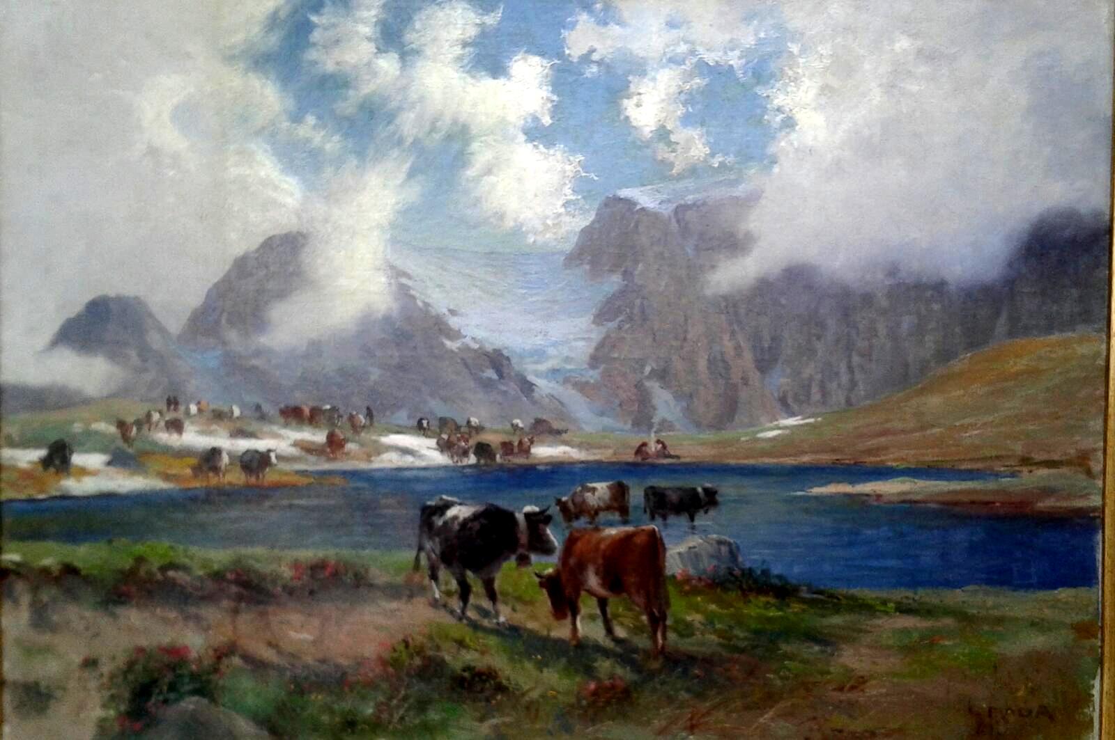 LEONARDO Roda "Mucche al pascolo" olio su tela cm 70x100 - Firma in basso a dx