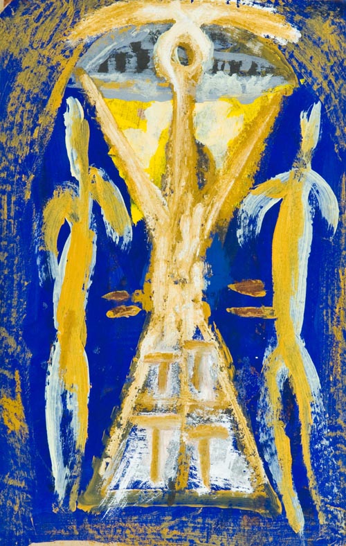 Bruno Ceccobelli Montecastello Vibio (Pg) 1952 Senza titolo 1988, Tecnica mista su carta, cm. 60x38,5, Sul verso: firma e timbro dell'Artista; Etichetta "Altair", Torino, con descrizione; Etichetta "Valente Arte Contemporanea", Finale Ligure, con descrizione.