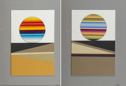Ferdinando Coppola Viareggio 1945 Lotto unico di due opere , -"Dal molo", Tecnica mista e collage su cartoncino, cm. 42x31, firmato in basso a destra, sul verso: firma e titolo; -"Dal molo", Tecnica mista e collage su cartoncino, cm. 42x31, firmato in basso a destra, sul verso: firma e titolo. ,