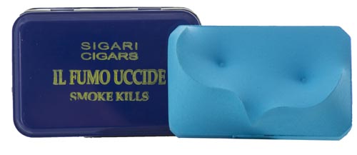 Giuseppe Amadio Todi (Pg) 1944 Smoke Kills , Tela estroflessa, cm. 9,5x14 posta all'interno di cofanetto porta sigari. L'Opera prende l'idea dagli avvertimenti scritti su ogni confezione di sigarette e sigari per la nocività del suo contenuto. Egli pone all'interno dei cofanetti un suo originale estroflesso per ricordare che l'arte è creatività e vita al contrario del fumo che uccide., Sul verso: scritto di Autenticità dell'Artista con timbro, firma e descrizione. Certificato di Autenticità dell'Artista.