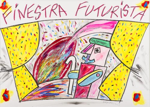 Bruno Donzelli Napoli 1941 Finestra futurista , Olio e tecnica mista su cartone, cm. 50x70, Firmato in basso a destra.