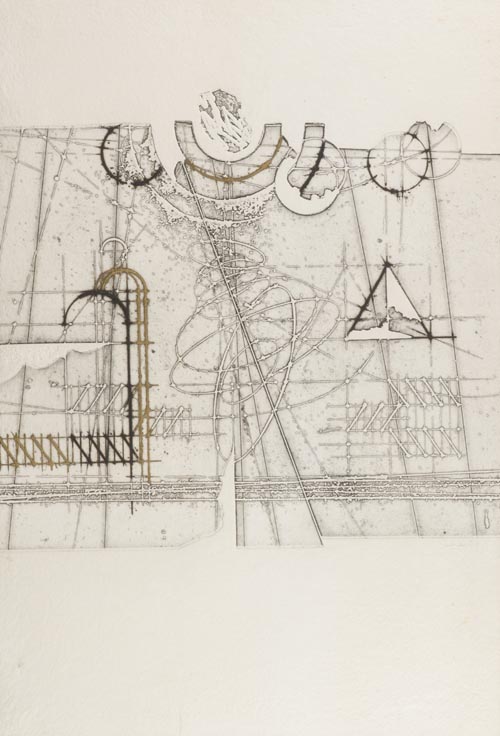 Walter Valentini Pergona (Pu) 1928 Senza titolo , Calcografia su carta a mano, cm. 90x62, es. 15/50, Firma in basso a destra, tiratura in basso a sinistra.