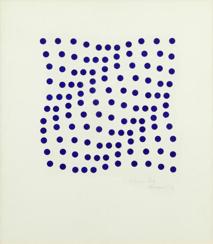 DE MARCO HUGO (1932-1995) Senza titolo bollini colorati su carta cm 40x35 firmato in basso a destra e dedicato all'amico Presta provenienza:Centro del Portello Genova