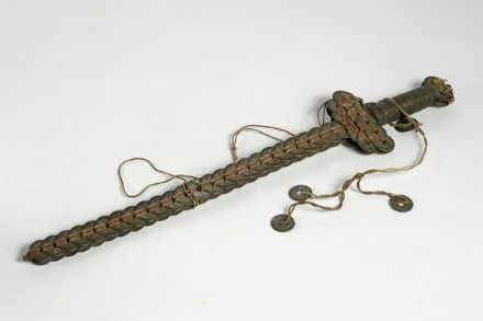 Spada di buon auspicio composta interamente di monete cinesi (Cash), Cina, XIX sec.