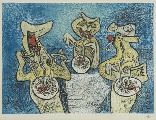 Sebastian Matta Santiago 1911 Tarquinia 2002 Senza titolo , Acquaforte e acquatinta di cm. 43x59 , su carta di cm. 50x65, es. 97/120, Firma in basso a destra, tiratura in basso a sinistra; Sul verso: timbro di provenienza.