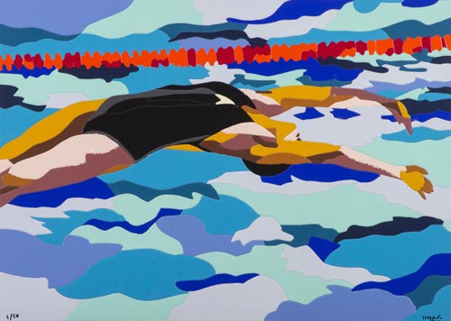 Ugo Nespolo Mosso Santa Maria (Bi) 1941 Il Nuoto 1984, Serigrafia su cartone,...
