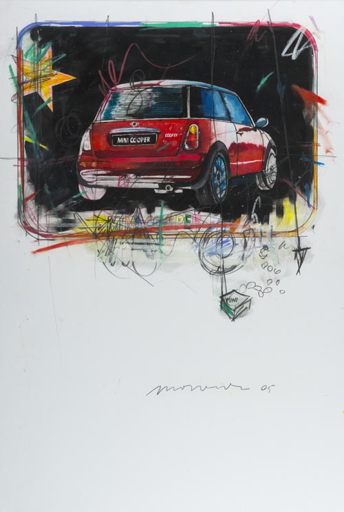 Enrico Manera Asmara 1948 Senza titolo 2005, Collage, matita e pennarelli su cartoncino, cm. 100x70, Firma e data in basso a destra. Bibliografia: Manera Light", a cura Maurizio Sciaccaluga, Cristian Maretti Editore, 2006, pag. 91. Autentica dell'Artista su foto.
