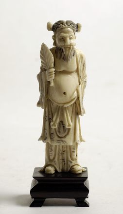 Figura mitologica scultura in avorio su base lignea, Cina, fine XIX sec., cm. h. 12.