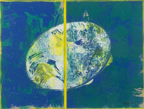 Lorenzo Piemonti Carate (Mi) 1935 2015 Senza titolo 1966, Acrilico e tecnica mista su cartoncino di cm. 35x46 su carta a mano di cm. 50x69, Firma e data in basso a destra; Sul verso: timbro "Archivio Lorenzo Piemonti", con n° 1469/1966 e descrizione.