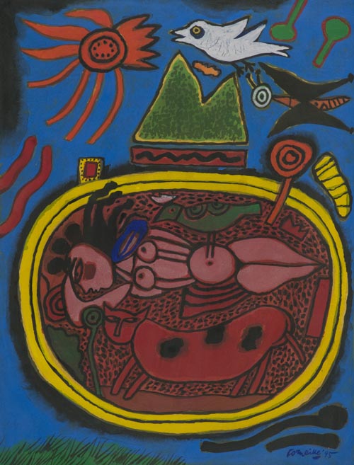 Guillaume Corneille Liegi 1922 Auves-Sur-Oise 2010 Immagine dell'estate 1995, Guache su carta, cm. 66x50, Firma e data in basso a destra; Sul verso: firma e data. Esposizione: "Collettiva di Natale di Grandi Maestri", Galleria Di Summa, Roma, 30 Novembre - 23 Dicembre 1995, pubblicato sul catalogo della mostra. L'opera è riprodotta sul quotidiano il Giornale d'Italia di Domenica 25 febbraio 1996 a pag. 9. Autentica dell'Artista su foto.
